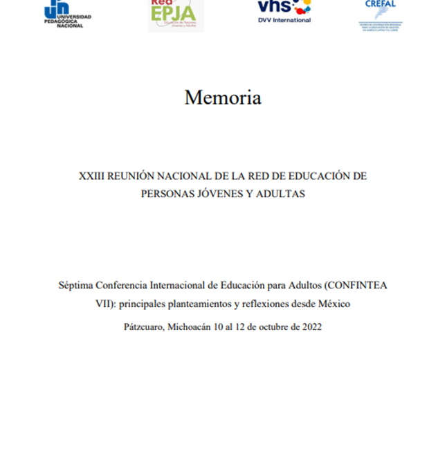 Adéntrate en las síntesis y relatorías de las actividades celebradas en la pasada Reunión Nacional y reflexionemos a partir de las aportaciones de los y las Conferencistas y panelistas. Lee y comparte la Memoria de la XXIII Reunión Nacional Séptima Conferencia Internacional de Educación de Adultos (CONFINTEA VII): Principales planteamientos y reflexiones desde México.